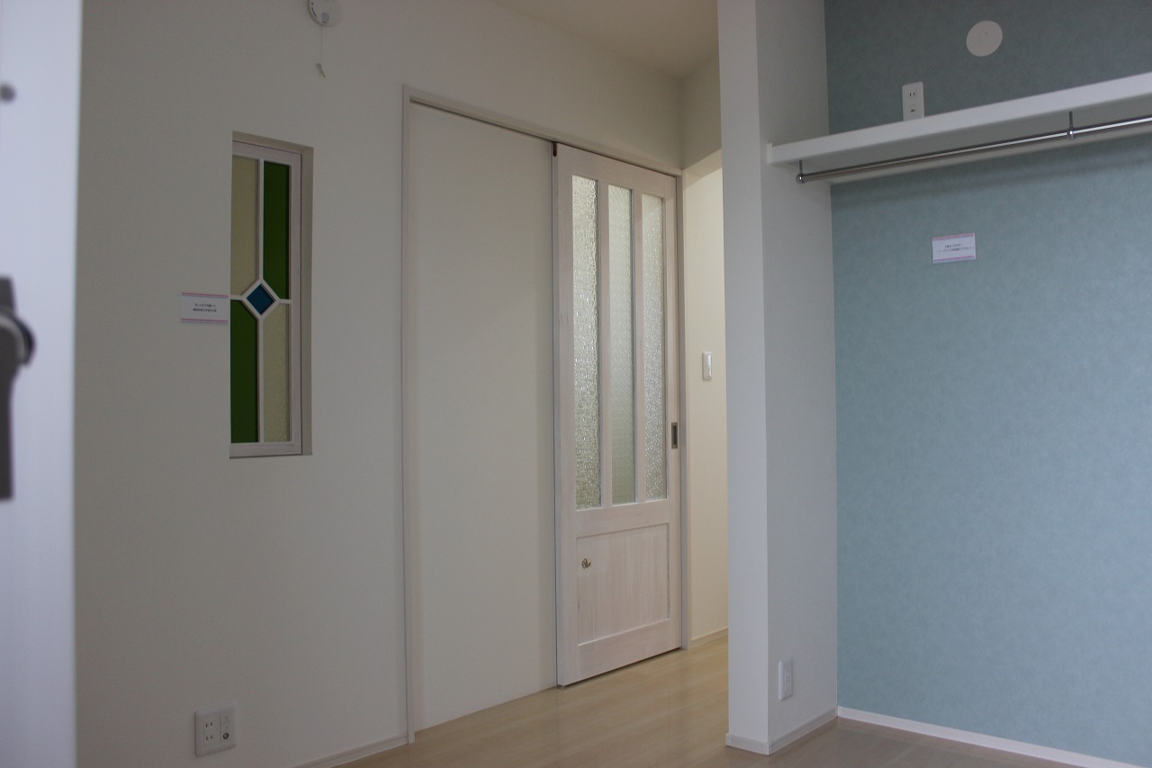 A棟とは、ドアの色とクロスの柄で違いを出しています。